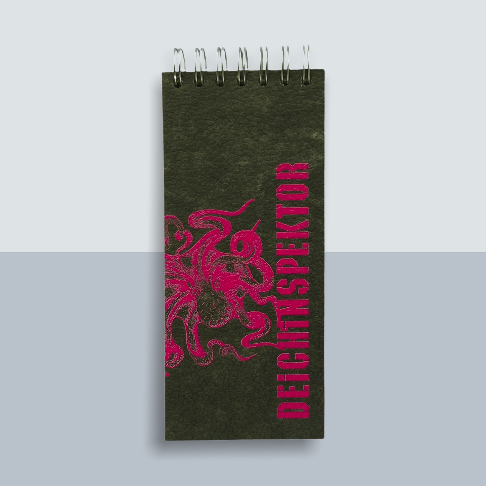 Unser „Kladdenjan“-Notizblock: Klein und trotzdem stabil, ideal für den Schreibtisch und für unterwegs: Gedanken immer schnell zu Papier bringen können. Sehr edel in weiss und schwarz. Farbenfroh und ein Muntermacher in hellgrün, magenta, hellgrün und hellblau. 5,5 cm breit und ca. 15 cm hoch . Das verwendete Papier ist natürlich recycelt und umfasst 100 Blätter. Auch nach der Verwndung als Schreibblock in vielerlei Hinsicht mit dem wunderschönen Druck auf der Vorderklappe ein toller Hingucker.